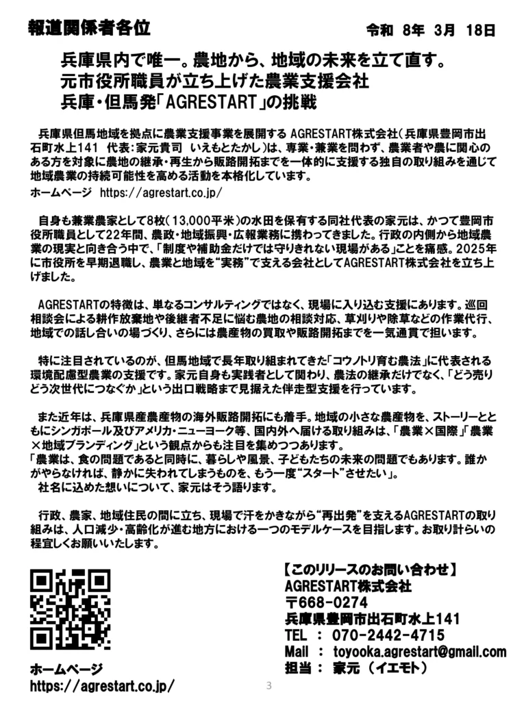 「2026年春 豊岡市商工会合同プレス発表会」と題して、去る3月18日に開催された記者会見。